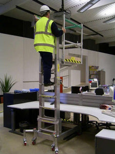 The Desksurfer has been designed for hands on facilities and maintenance engineers, to specifically answer the difficult access requirements when working over desks, lab tables and many more office situations. A 900mm out reach platform provides an easy 1200mm of hands on access to light fittings, air conditioning extractor filters etc.